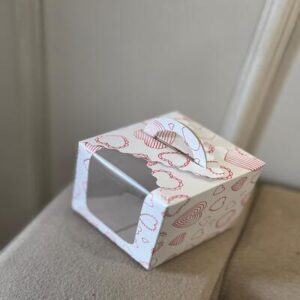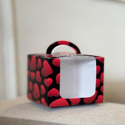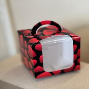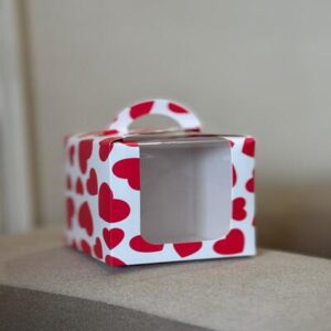 This charming 4×4×4 cupcake box is designed especially for Valentine’s Day, featuring romantic colors and a clear window to beautifully showcase your cupcake. Perfect for gifting, it adds a sweet and elegant touch to any celebration of love.