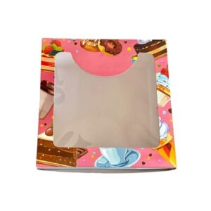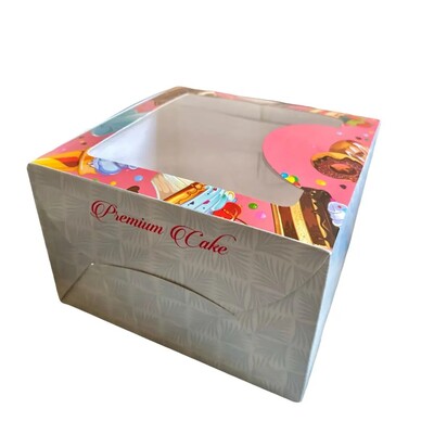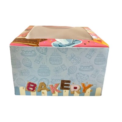 The 8×8×5 cake box in Premium Celebration color is designed to elevate cake presentation with a festive and elegant look. Featuring one clear window, it beautifully displays the cake while keeping it protected. This box is perfect for special occasions, gifting, and professional bakery packaging.